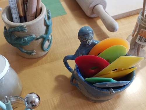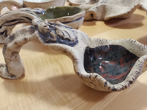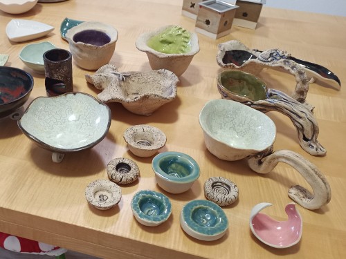 Da können wir töpfern oder einfach gemütlich plaudern. Und vielleicht findest du unter den ausgestellten Töpferwaren etwas schönes zum verschenken oder für dich selbst.